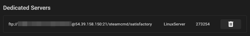 • Input your server’s FTP credentials (username, password, and IP address). Use this format: username:password@IP:21/steamcmd/satisfactory/.