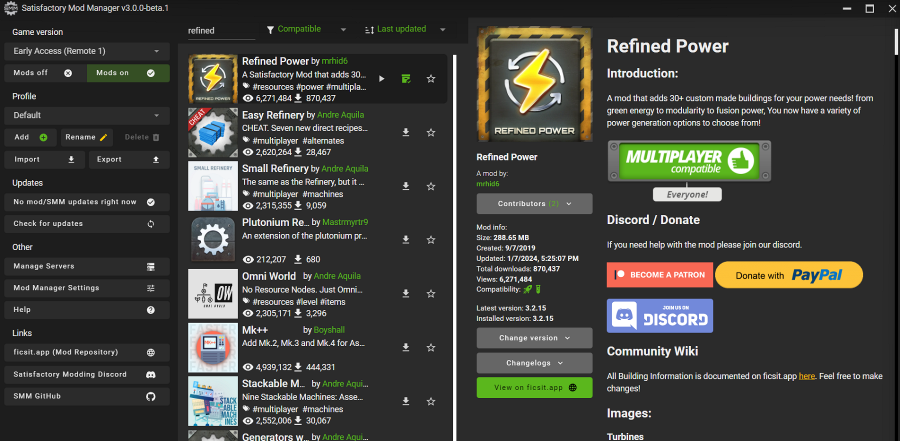 Satisfactory Mod Manager is essential for both new and experienced players looking to customize their experience with minimal hassle. With features like automatic updates, mod compatibility checks, and an integrated link to the official Satisfactory Mod Repository, this tool ensures that you can explore the vast world of mods without the common pitfalls of manual installations, such as file conflicts or outdated versions.
