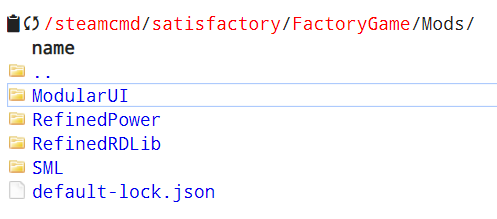 • Navigate to the mod installation directory: /steamcmd/satisfactory/FactoryGame/Mods/.